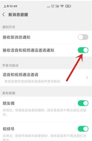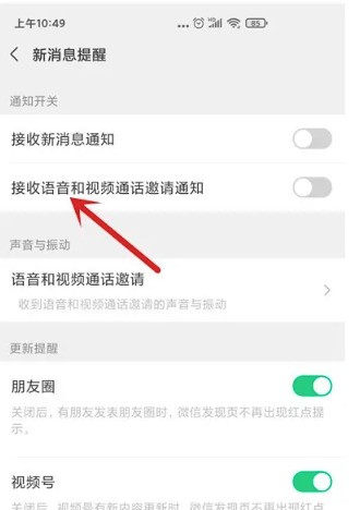 第五步,点击“接收语音和视频通话邀请通知”。(如下图所示)