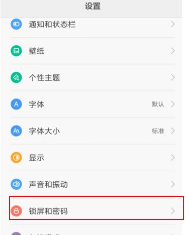 2、选择锁屏和密码。