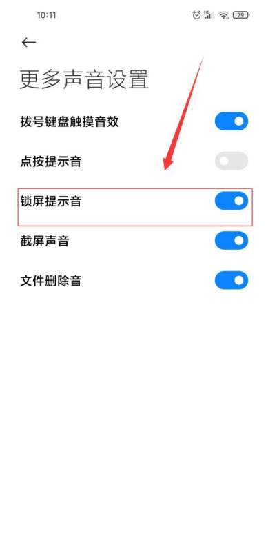 关闭锁屏提示音开关在【更多声音设置】页面中,找到【锁屏提示音】选项,将其右侧的开关滑动至关闭状态(灰色显示)。此时系统将不再播放锁屏时的按键音效。