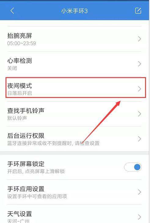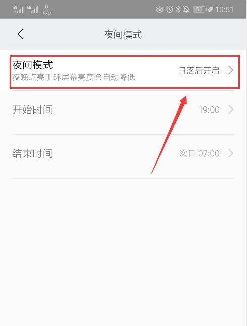 小米手环设置夜间模式(自动降低屏幕亮度)的方法如下:
