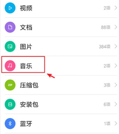 5、进入快传页面,选择要发送的文件,比如:音乐。