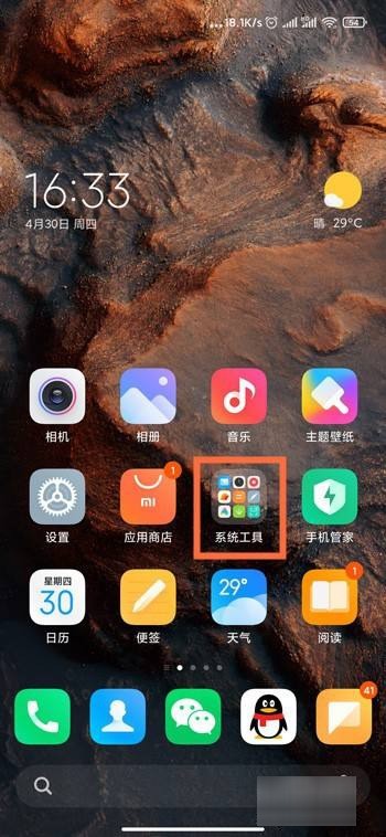 1、打开小米手机桌面,点击系统工具。