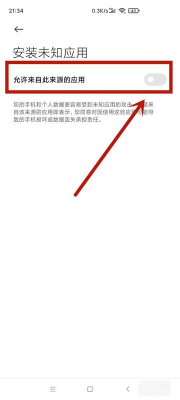 6、将允许来自此来源的应用后的按钮点击关闭,即可成功操作。