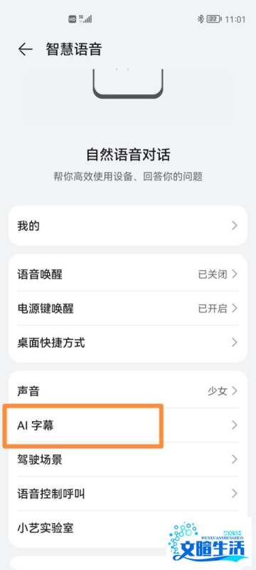 进入【AI字幕】设置项:在智慧语音设置页面中,找到【AI字幕】选项并点击,进入AI字幕功能设置页面。