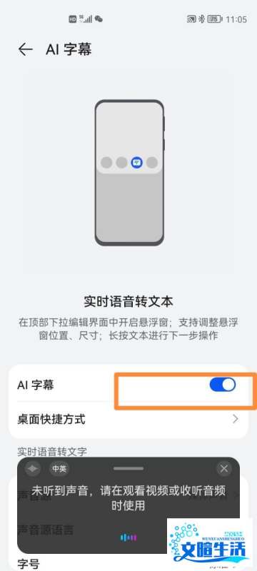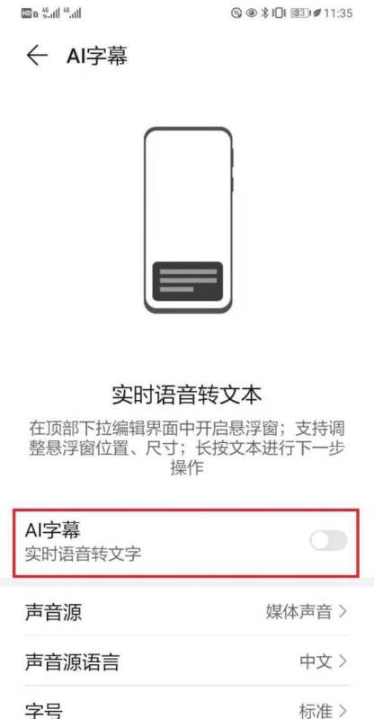 功能说明:开启后,手机将支持实时将视频或语音文件内容转换为文字,并显示在屏幕上。