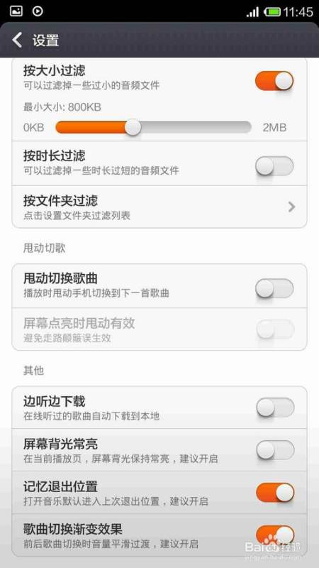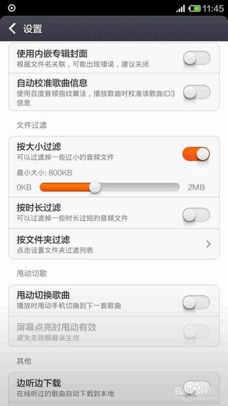 非常好的功能,还在为短短的铃声也被当成歌曲显示在列表么,这里就能解决问题了,推荐可以过滤设置在1M以上,而且可以过滤音乐时长,同时还可以添加过滤文件夹哦!!