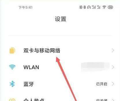 步骤1:进入网络设置界面打开手机“设置”,选择“双卡与移动网络”选项。