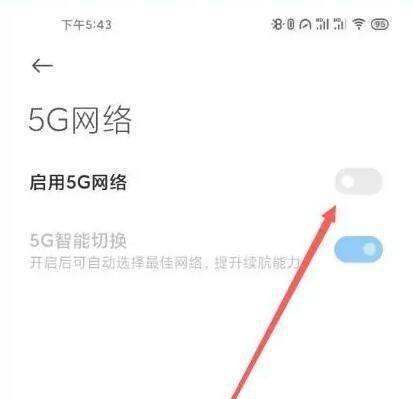 步骤2:开启5G网络功能在“双卡与移动网络”界面中,找到“启动5G网络”选项,点击其右侧灰色按钮切换为蓝色开启状态。