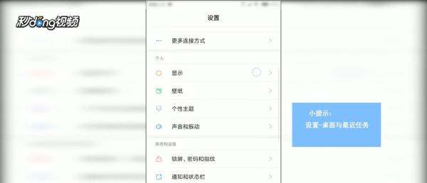 定位“桌面与最近任务”菜单:在设置界面中,通过上下滑动或搜索功能找到“桌面与最近任务”选项,点击进入该菜单。
