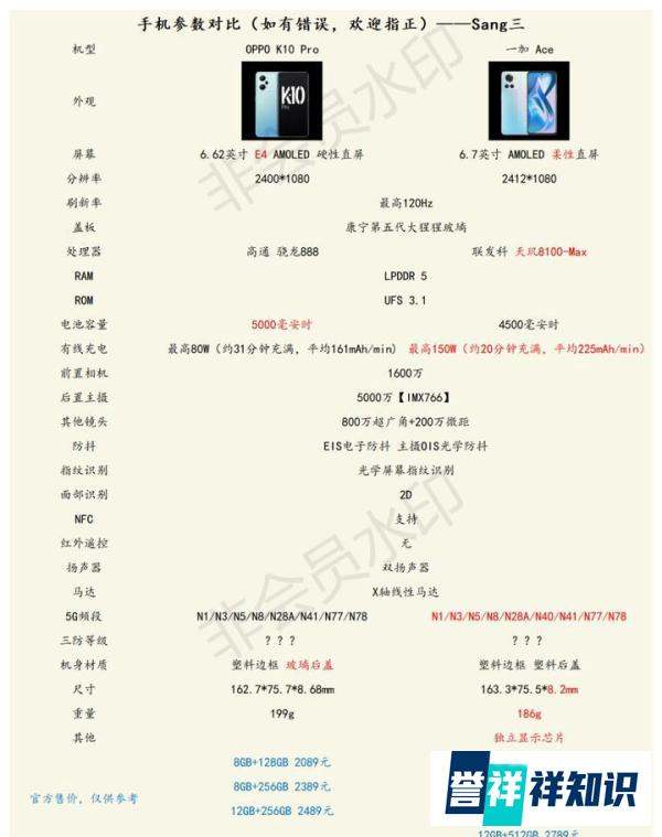 OPPO K10 Pro与一加 Ace的对比情况如下: