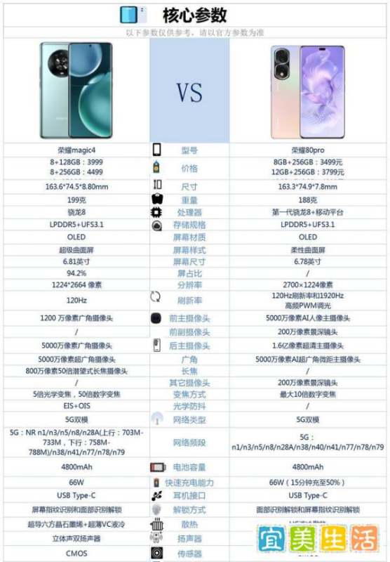 价格差异荣耀80 Pro的售价更低,以8+256GB版本为例,其价格为3499元,而荣耀Magic4同版本售价为4499元,两者相差1000元。若预算有限或追求性价比,荣耀80 Pro更具优势。
