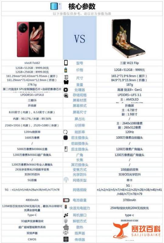 若追求性价比、高性能、长续航与专业影像,推荐选择vivo X fold2;若偏好更轻便机身、对存储容量有更高需求且预算充足,三星W23 Flip更合适。 以下为详细对比分析: