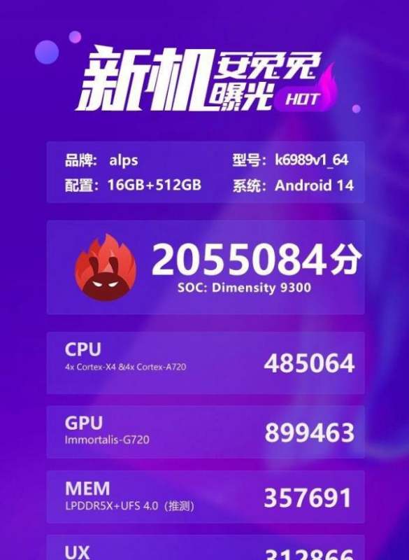 内存与存储:16GB LPDDR5X内存 + 512GB UFS 4.0存储,确保数据读写速度最大化。系统版本:Android 14系统优化调度策略,减少后台资源占用。散热设计:测试机可能采用高效散热模块,避免长时间高负载下的性能衰减。5. 行业影响与市场定位