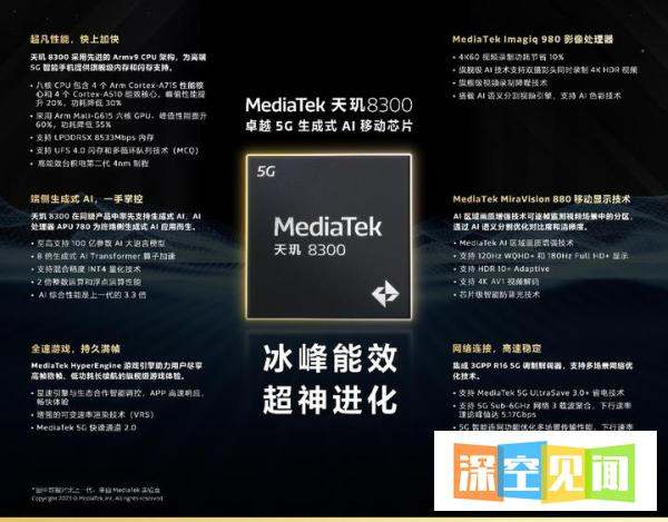 MediaTek发布的天玑8300移动芯片,通过架构升级、性能提升及AI技术整合,全面革新了端侧生成式AI的应用能力,同时优化了游戏、影像、网络等核心体验,为高端智能手机市场注入新动能。