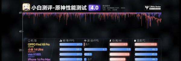 从数码博主“小白测评”释放的Find X8 Pro商用机性能评测视频来看,天玑9400的实际表现确实不负众望。在《原神》这款对硬件要求极高的游戏中,Find X8 Pro全程帧率稳定,几乎呈一条直线。值得注意的是,这里的稳定不仅仅是平均帧率达到60帧,更重要的是在潮汐引擎+天玑9400的加持下,Find X8 Pro不仅帧率稳定,还有明显更低的平均功耗和温度。这样的表现,无疑证明了天玑9400在能效方面的出色优化。