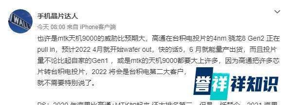 芯片信息:高通下一代旗舰芯片SM8475(骁龙8 Gen 1代号为SM8450)将由台积电代工,产品名可能为骁龙8 Gen 2或骁龙8 Gen 1+。