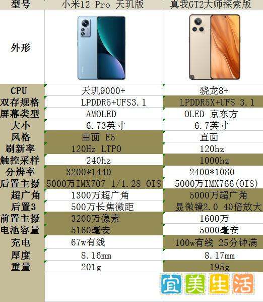 同样12+256版本,小米12 Pro天玑版比真我GT2大师探索版便宜500元,性价比更高。
