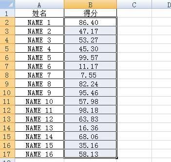 3、选中得分列的数据。