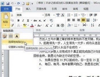 2?? 点顶栏→右边按钮的小三角▼→点选择性粘贴(不是直接点大粘贴!)