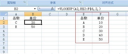图中红框处E列和F列用来存储数据,A列投存宪蒸严下评号力为名称,通过名称查找出对应的单整委曲害须八太混了价