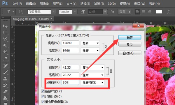 4. 弹窗里找到分辨率那一栏,默认是72,直接删掉,输300!