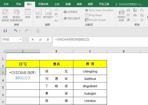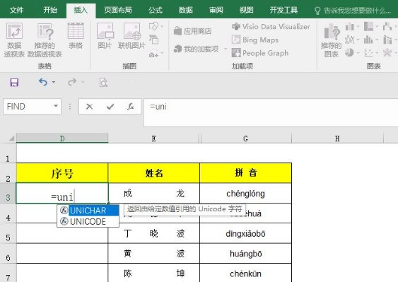 1、首先输入函数=unichar,按TAB键,如下图所示: