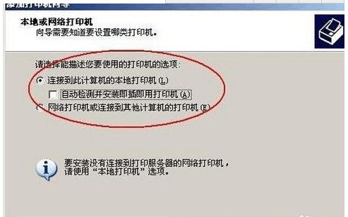 2?? 弹窗点下一步,关键来了?勾选「使用本地端口」,务必取消勾选自动检测即插即用打印机(不然它瞎找半天,纯浪费时间!)。
