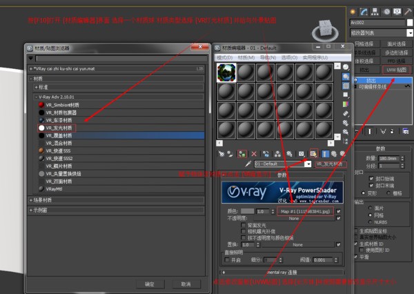4. 点打开界面,挑个喜欢的材质球,类型选好,直接拖给窗户!再点进去调贴图尺寸,拉到顺眼为止??
