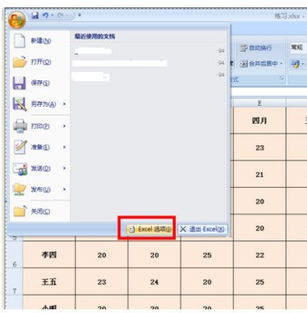 单击之后会下拉选项,在下拉的选项里我们单击“excel选项”按钮。
