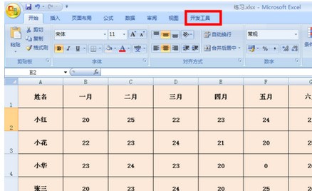 单击确定按钮之后会发现在菜单栏里多了一个选项,那就是“开发工具”选项,单击该按钮。