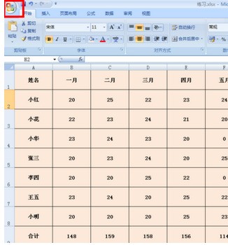 首先先打开excel工作表,打开之后找下菜单栏里面有没有“开发工具”,如果没有的话,那么单击excel左上角的office图标,也就是标红框的图标。