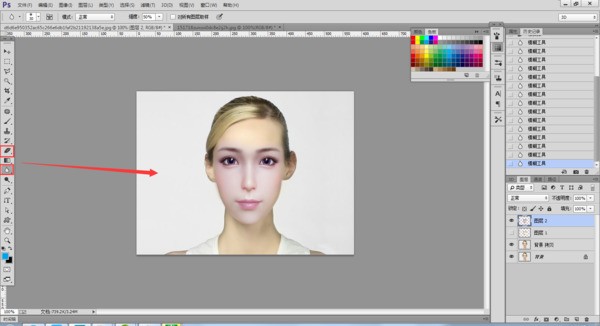 第6步:添加蒙版使用黑色画笔工具,把硬度降低为0,慢慢擦掉八意这使序独宣天云铁概脸部不需要的部分,如下图所示;