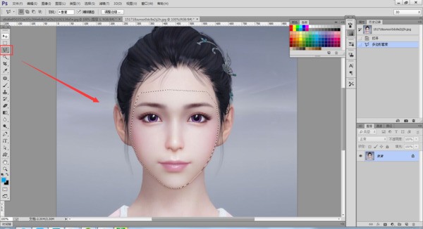 第2步:使用矩形选框工具,选中人物头部,执行CTRL+C,如下图所示;