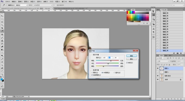 第8步:我们再次使用曲线对红、蓝、RGB通道进行调整,此时面部颜色比较接近了,如下图所示;