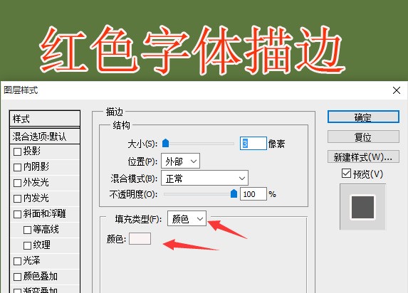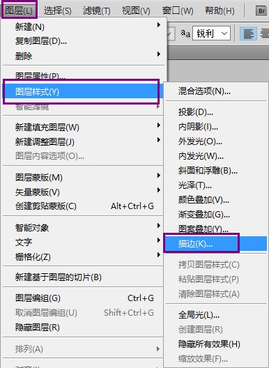2?? 选中文字图层→点图层→图层样式→描边;