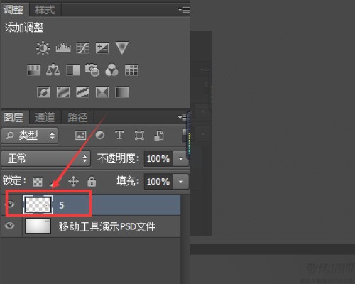 2、切到移动工具(快捷键V),按住Shift键再拖这个图层,直接往目标文档窗口里拽!松手就自动对齐原位置,超省事~