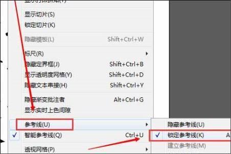 6、接着,完成上看本更述步骤后,第三条锁定参考线如图所示,依次单击“视图”-->“参考线”-->“锁定参考线”,已勾选“锁定参考线”之后,就可以拉出参考线了,但还不能移动或删除参考线,如下图所示,然后进入下一步。