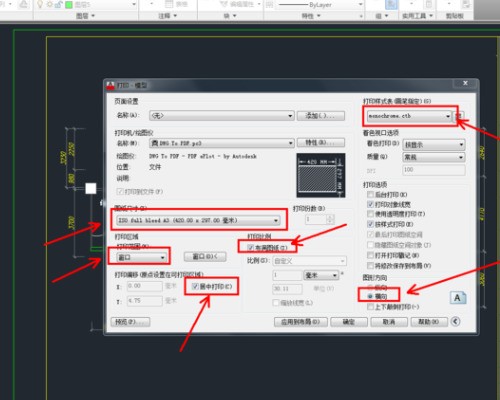 ③ 打印机选DWG To PDF.pc3,参数按图调好(重点看线宽、打印样式);