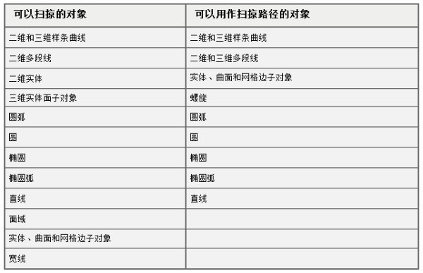 扫掠:SWEEP命令可通过沿指定路径拉伸轮廓形状(扫掠对象)来绘制实体或曲面对象。沿路径扫掠轮廓时,轮廓将被移动并与路径法向(垂直)对齐。如果沿一条路径扫掠闭合的曲线,则将生成实体。如果沿一条路径扫掠开放的曲线,则将生成曲面。