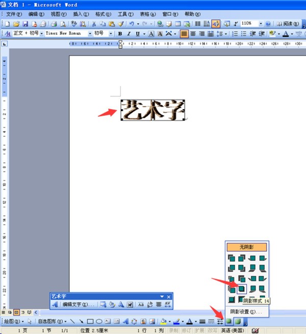 来啦!手把手教你给Word2010的艺术字加阴影~