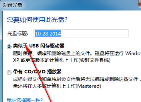 2?? 起个光盘名(比如我的资料),下面选类似于USB闪存驱动器(重点!别选错成CD/DVD播放器哈)