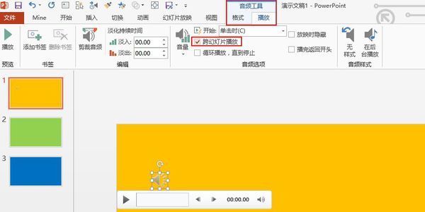在正式的ppt加入音频,而且音频要跨页面播放(第1步),