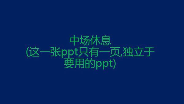 [整体效果]在放映时,单击超链接,会跳转到我们准备的一页(比如我的"中场休息"),此时音乐暂停,放完这一页后,会返回到原来的ppt,此时音乐继续