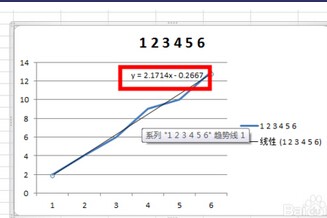6.确定之后可以看到出现一条拟合曲线以及公式,则斜率为2.1714