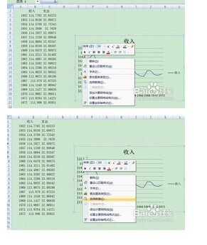 2、然后,右击收入的Y轴坐标,点击“选择数据”,