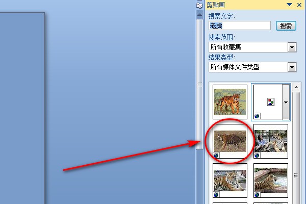 步骤3:打开“剪贴画”任务窗格,在其中选择需要的剪贴画音频,如下图所东示。
