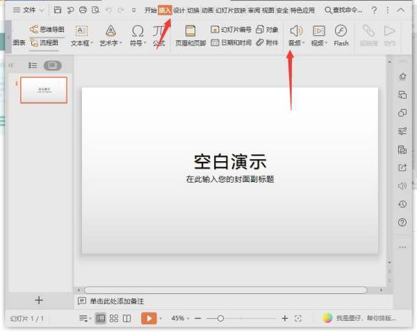 ? 如果用的是WPS,步骤几乎一模一样,就是菜单字儿稍微不一样,找插入-音频准没错