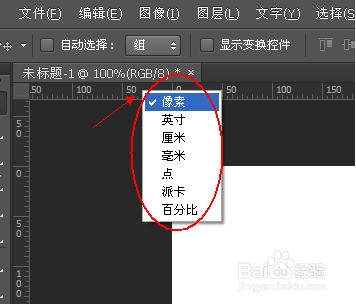 一般参考线默认的单位是厘米,要改成像素,可以在标尺上点右键,进行单位设置。