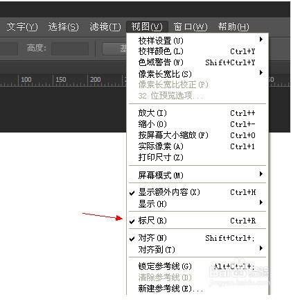 从视图菜单中勾选标尺,这样我们就可以从标尺上直接拖出参考线来;