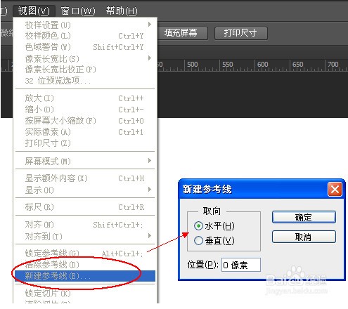 在视图菜单中选择新建参考线。可以打开新建参考线设置面板,可以看到,通过输入水平及垂直参考线的位置可以做到精确的定位。